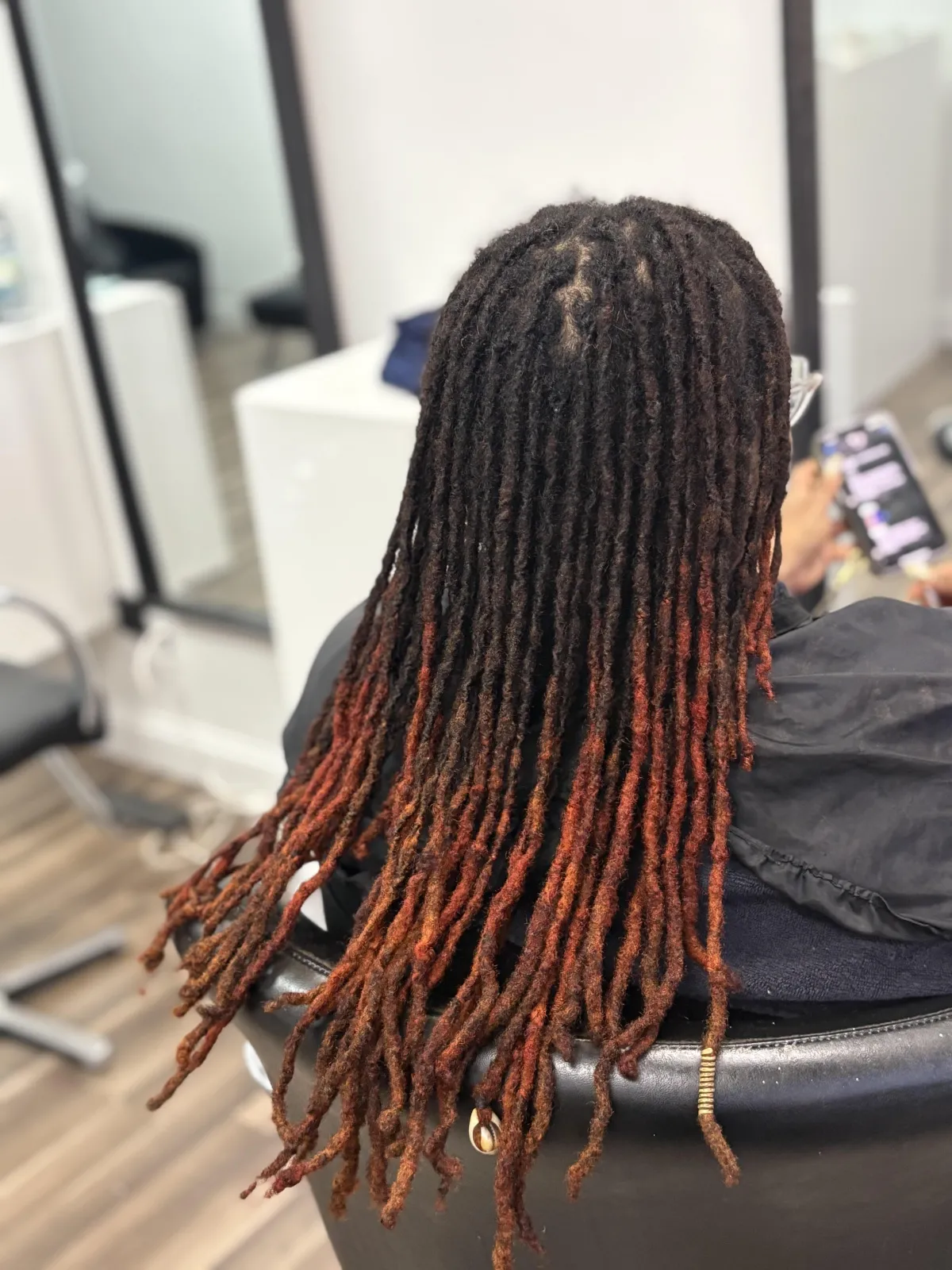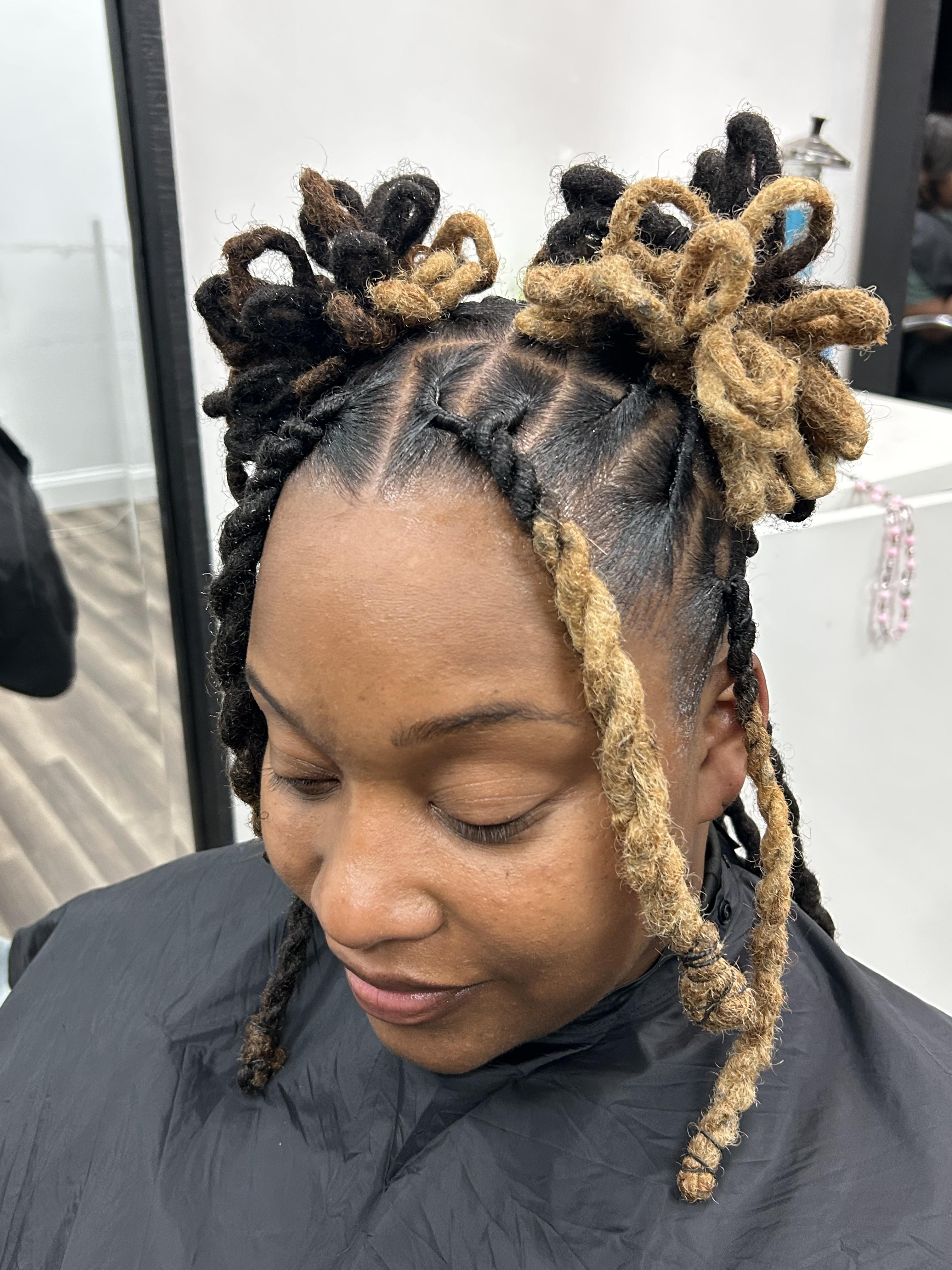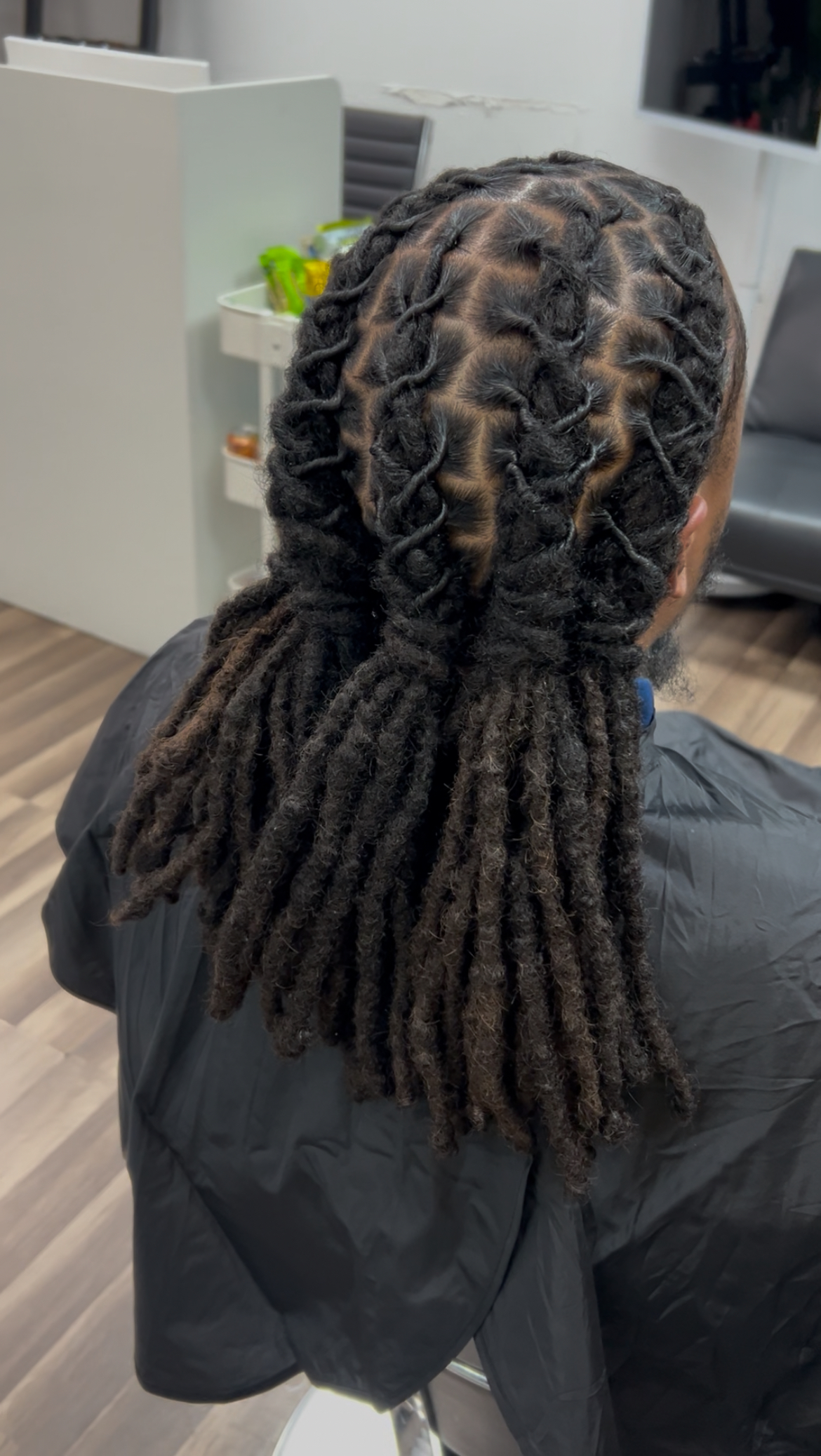 Loc maintenance refers to the care and upkeep needed to keep your locs healthy and well-formed. This includes regular retwisting or palm rolling to maintain the shape of the locs, washing to keep the scalp clean, moisturizing to prevent dryness, and styling to keep your locs looking fresh. At Joycey Salon, we tailor our maintenance services to your specific hair needs, ensuring your locs grow strong and vibrant