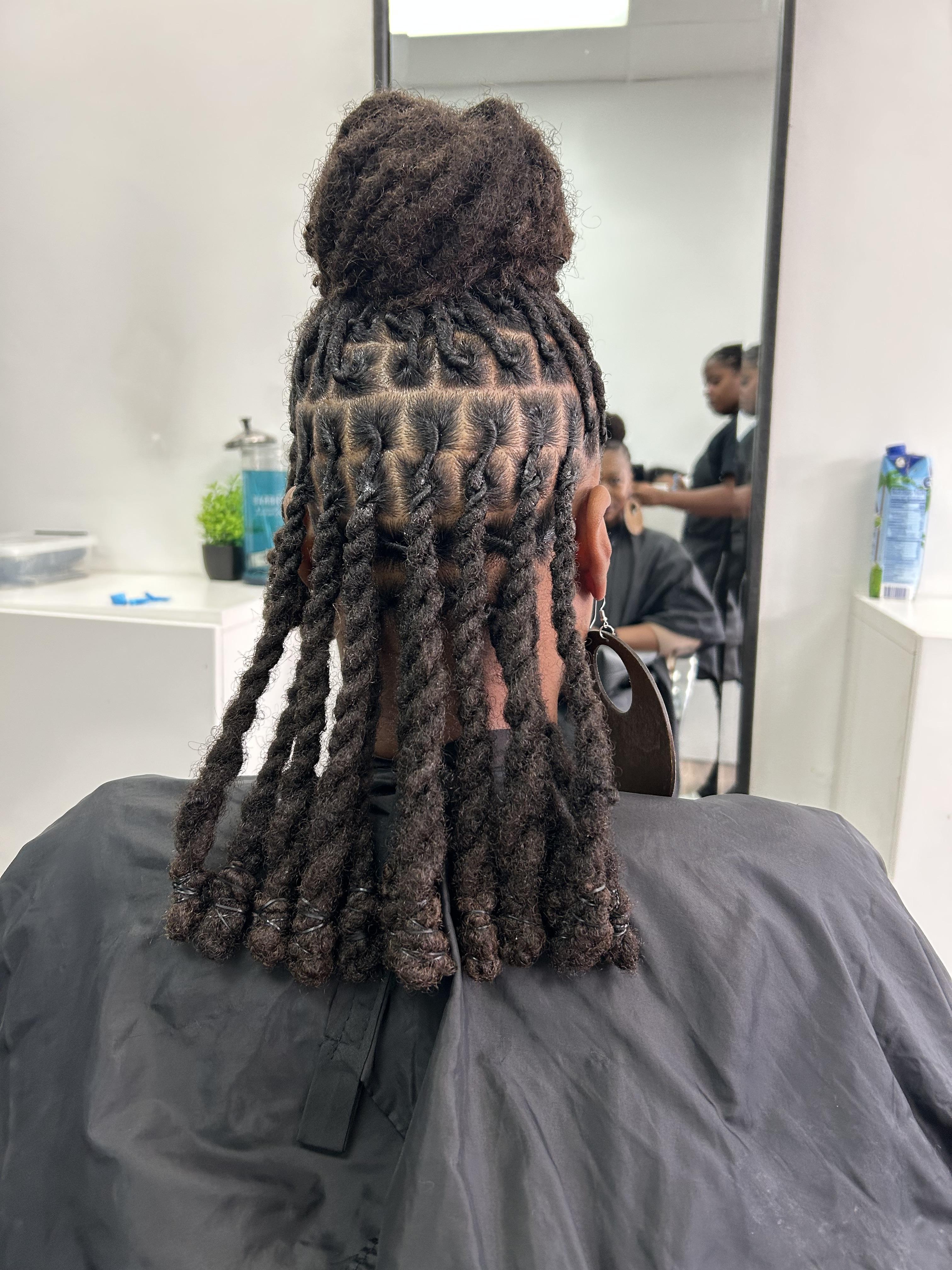 Loc maintenance refers to the care and upkeep needed to keep your locs healthy and well-formed. This includes regular retwisting or palm rolling to maintain the shape of the locs, washing to keep the scalp clean, moisturizing to prevent dryness, and styling to keep your locs looking fresh. At Joycey Salon, we tailor our maintenance services to your specific hair needs, ensuring your locs grow strong and vibrant